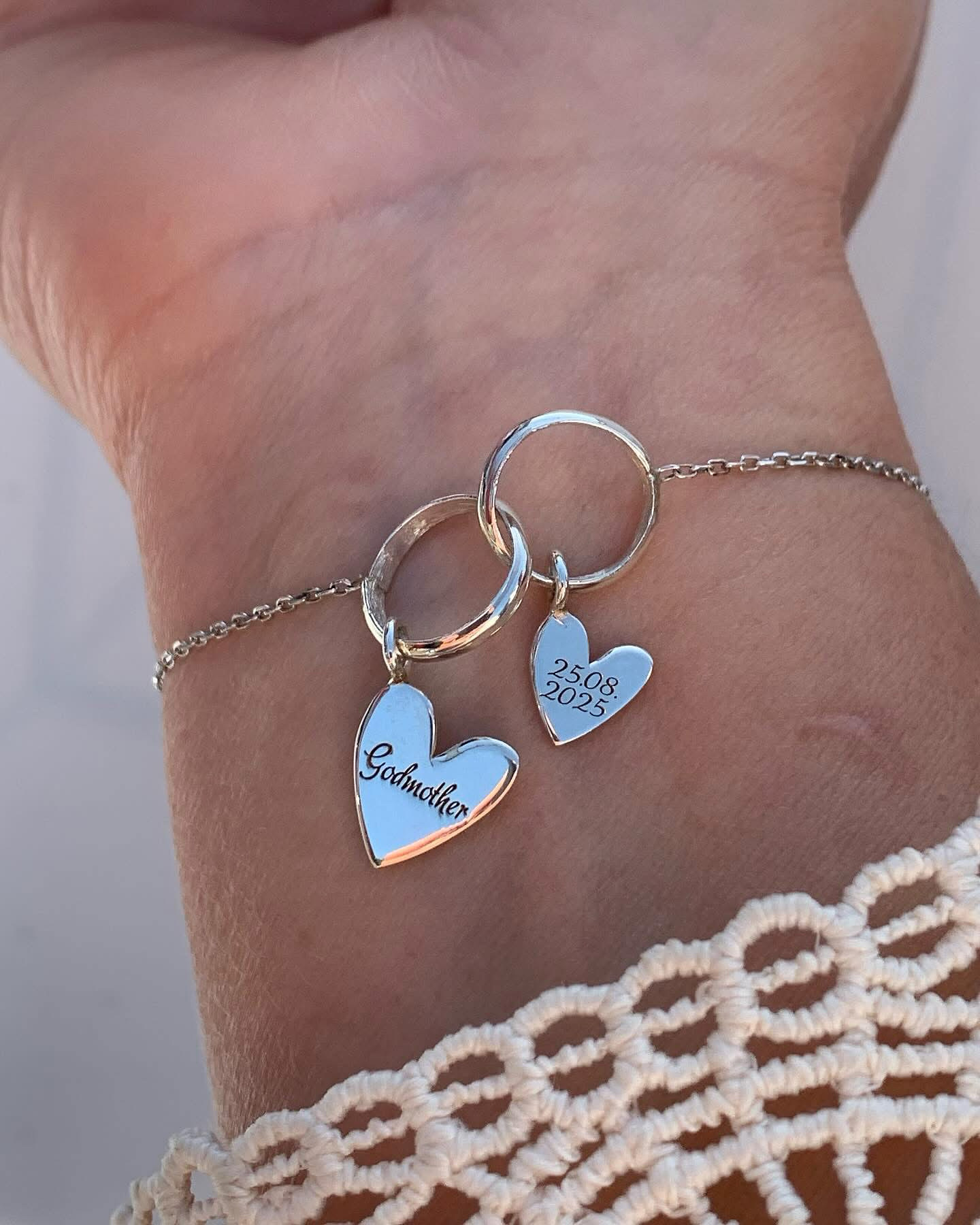 Δείξε την αγάπη σου με ένα μοναδικό δώρο που θα μείνει αξέχαστο. Το ασημένιο βραχιόλι υπόσχεσης αγάπης είναι διακοσμημένο με δύο καρδιές, όπου μπορεί να χαραχθεί όνομα, ημερομηνία ή ένα ιδιαίτερο μήνυμα. Ένα κομψό και ρομαντικό κόσμημα, ιδανικό για επετείους, γενέθλια, γάμο, αρραβώνα ή απλά για να εκφράσεις τα συναισθήματά σου.