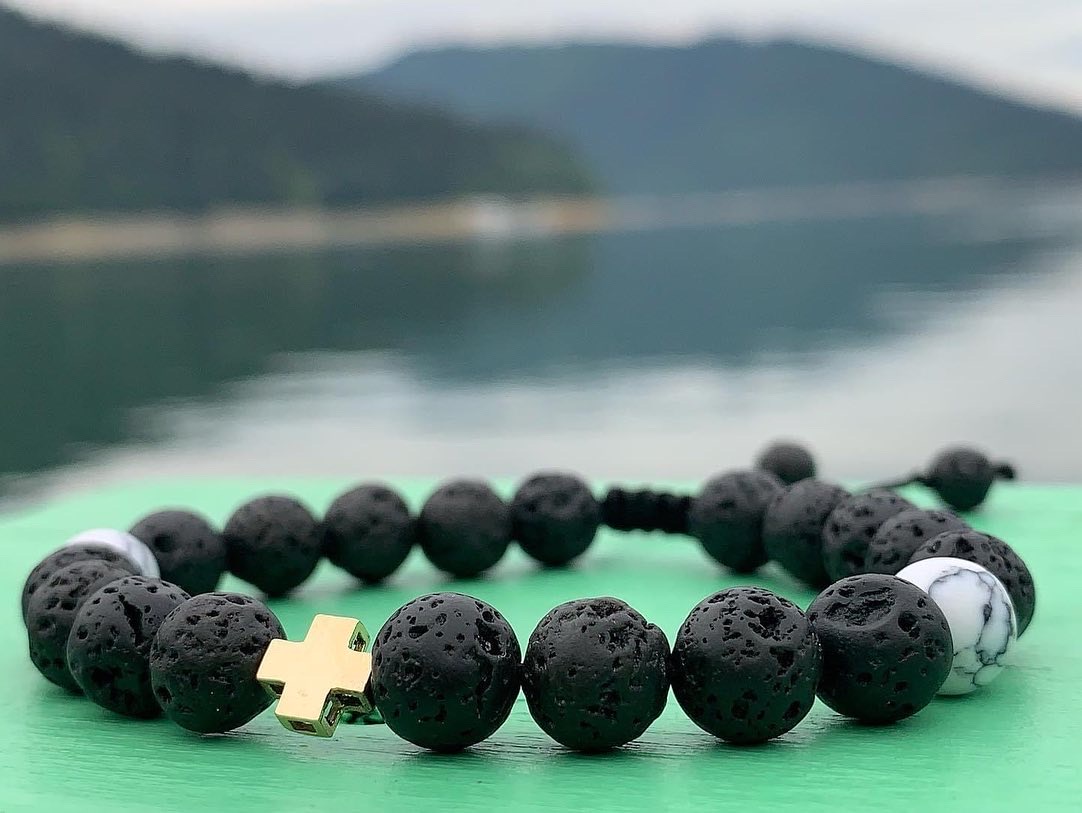 | Μαργαριτάρια | Swarovski (λευκά), Ημιπολύτιμες πέτρες σε χρώμα καφέ, Λάβα |