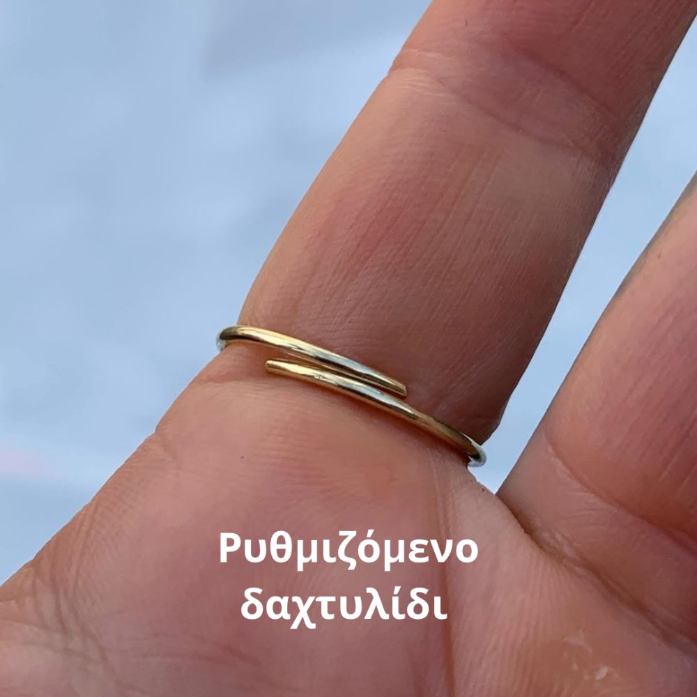 Γυναικείο δαχτυλίδι από ασήμι 925, επιχρυσωμένο με επιχρύσωση 14 Κ για διακριτική λάμψη. Minimal και κομψό, ιδανικό για καθημερινή χρήση. Διατίθεται σε όλα τα νούμερα και ρυθμιζόμενο για άνετη εφαρμογή.