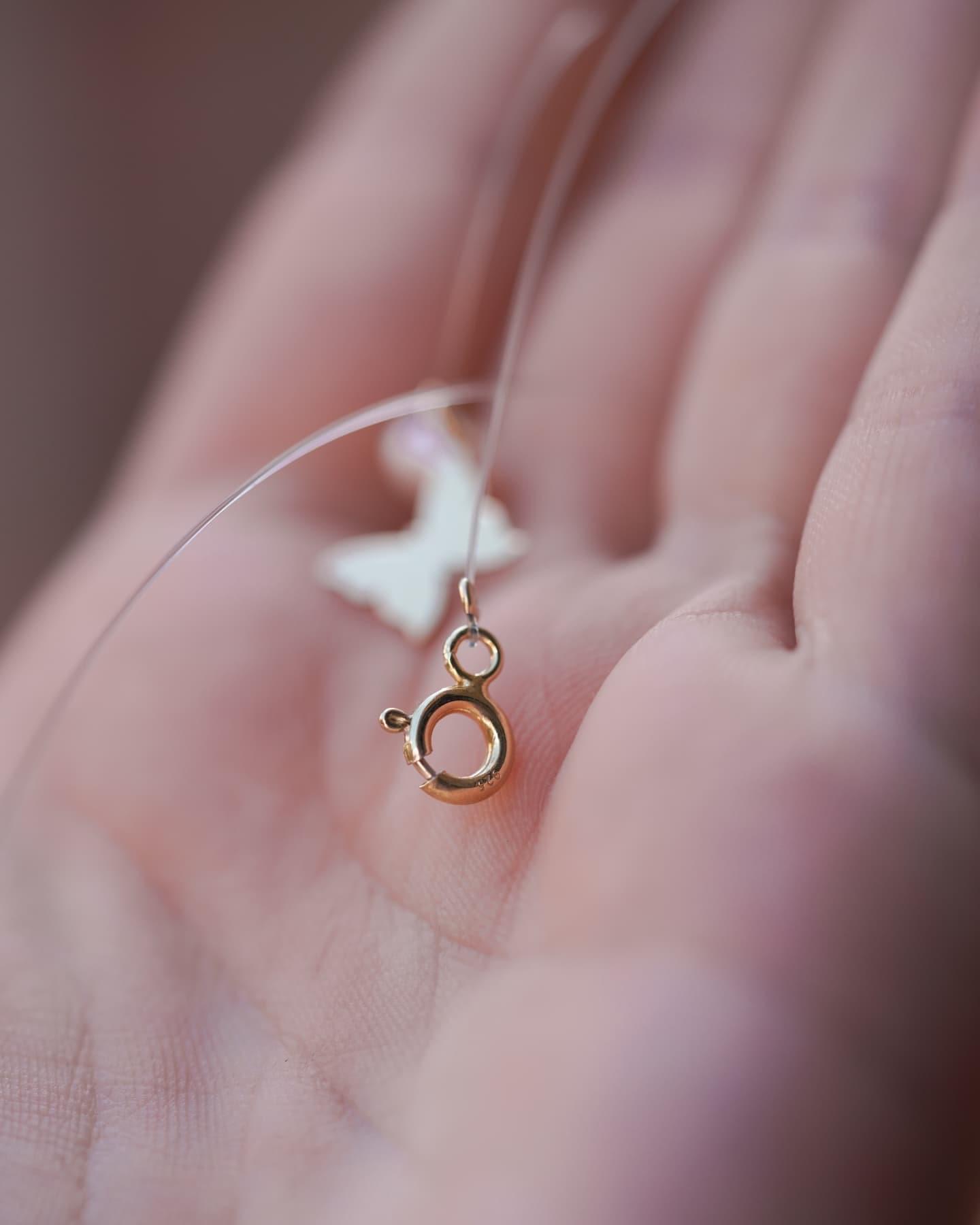 Ένα απλό και όμορφο κολιέ που ταιριάζει σε κάθε περίσταση. Έχοντας το διαφανές δέσιμο γύρο από το λαιμό, δίνει την ψευδαίσθηση της πεταλούδας να αιωρείται ♥️