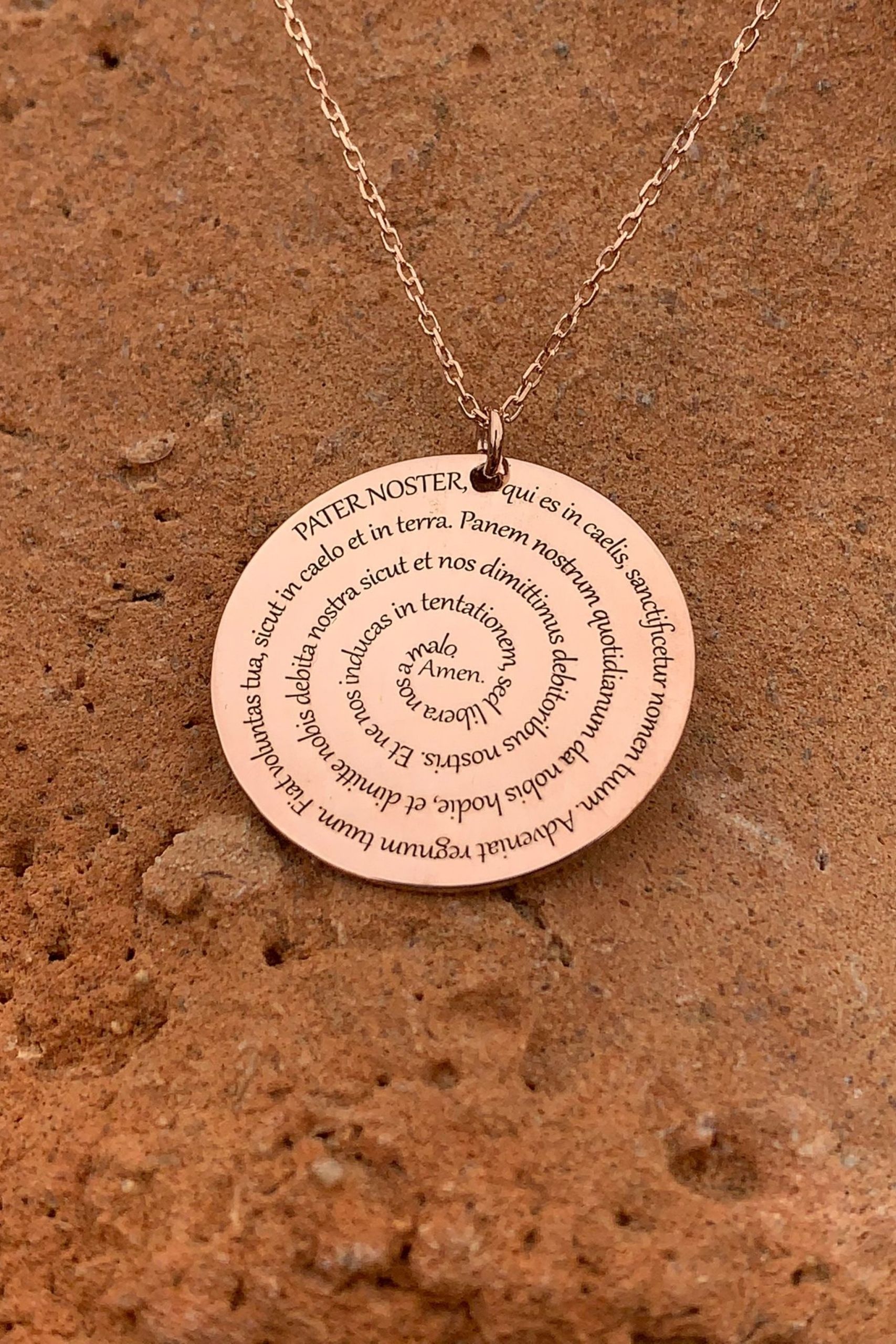 Το κολιέ με το πάτερ ημών βγαίνει σε όλες της γλώσσες. Αν θέλετε κάποια έξτρα χάραξη, αφήστε μας στης σημείωσης αυτό που θέλετε.