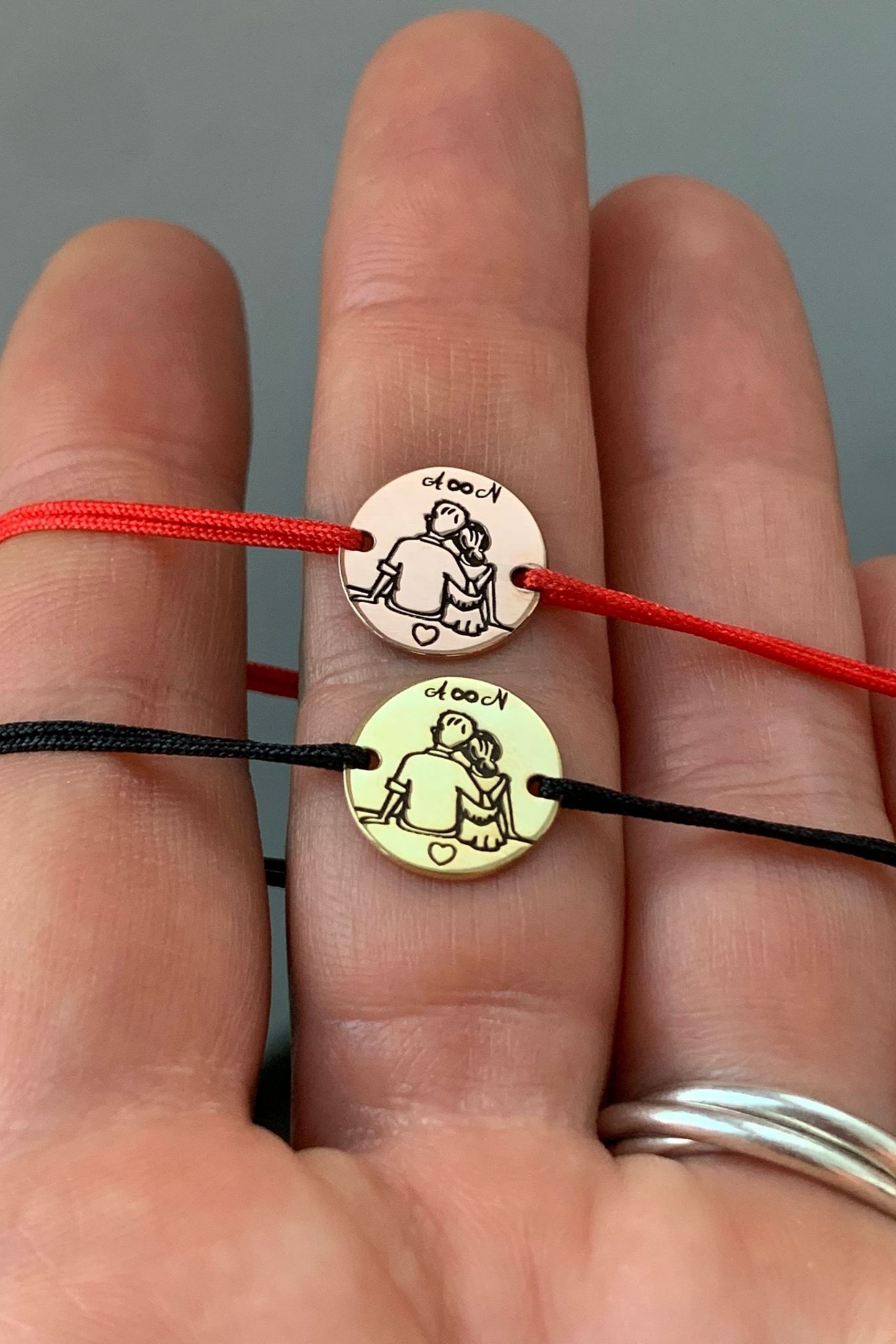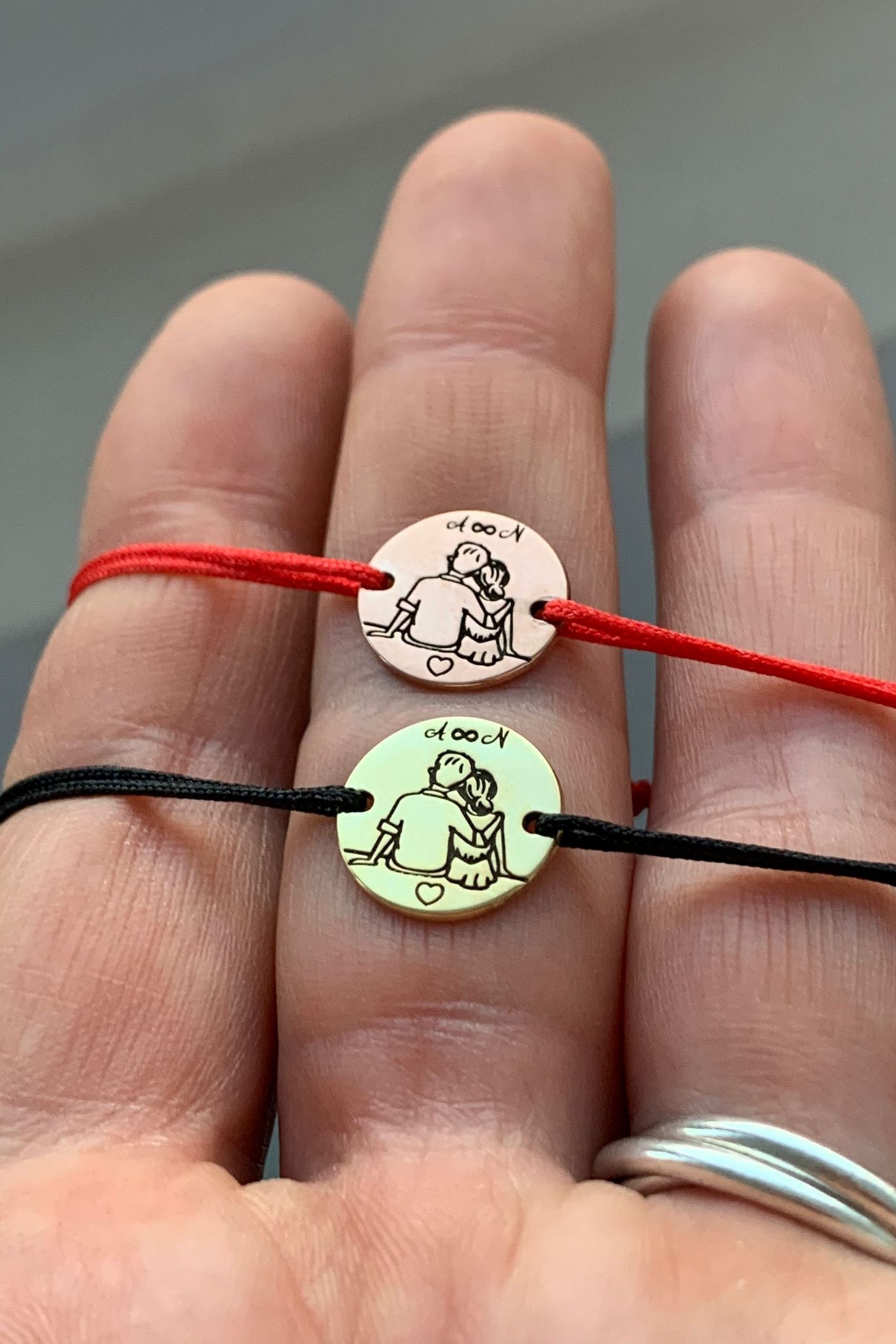 Σετ με 2 βραχιολάκια με χάραξη τα αρχικά σας. Μπορείτε να μας αφήσετε στης σημειώσεις τα αρχικά που θέλετε να σας χαράξουμε στα βραχιολάκια.