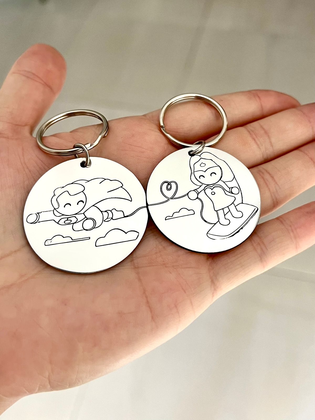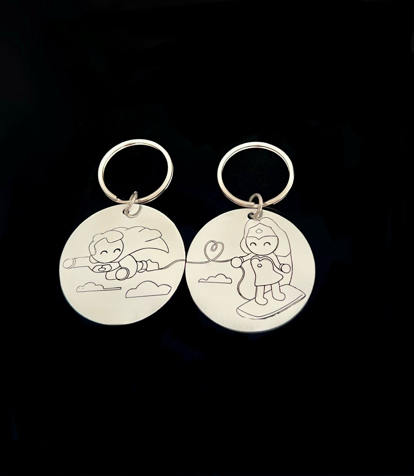 Ξεχωριστό σετάκι από μεταλλικά μπρελόκ με τον Superman και τη Superwoman να ενώνονται με ένα σκοινί που σχηματίζει μία καρδούλα, το οποίο δημιουργήθηκε ως απάντηση στο “συνέταιροι στο έγκλημα”. Το κάθε μπρελόκ είναι σε ασημί χρώμα! Αφιερωμένο στους ήρωες της καρδιάς μας που δεν κυκλοφορούν με στολή!